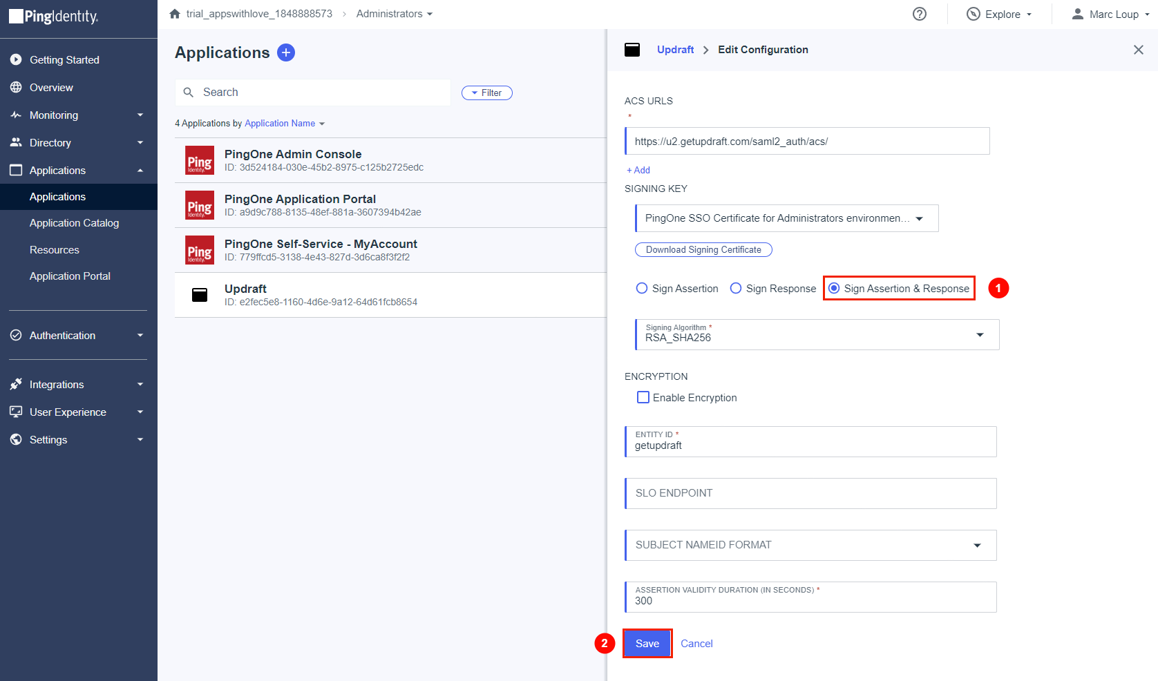 After following all the above steps, log in to your Updraft account to verify that you are now able to sign in with your Custom SSO (Ping Identity).&#x20;