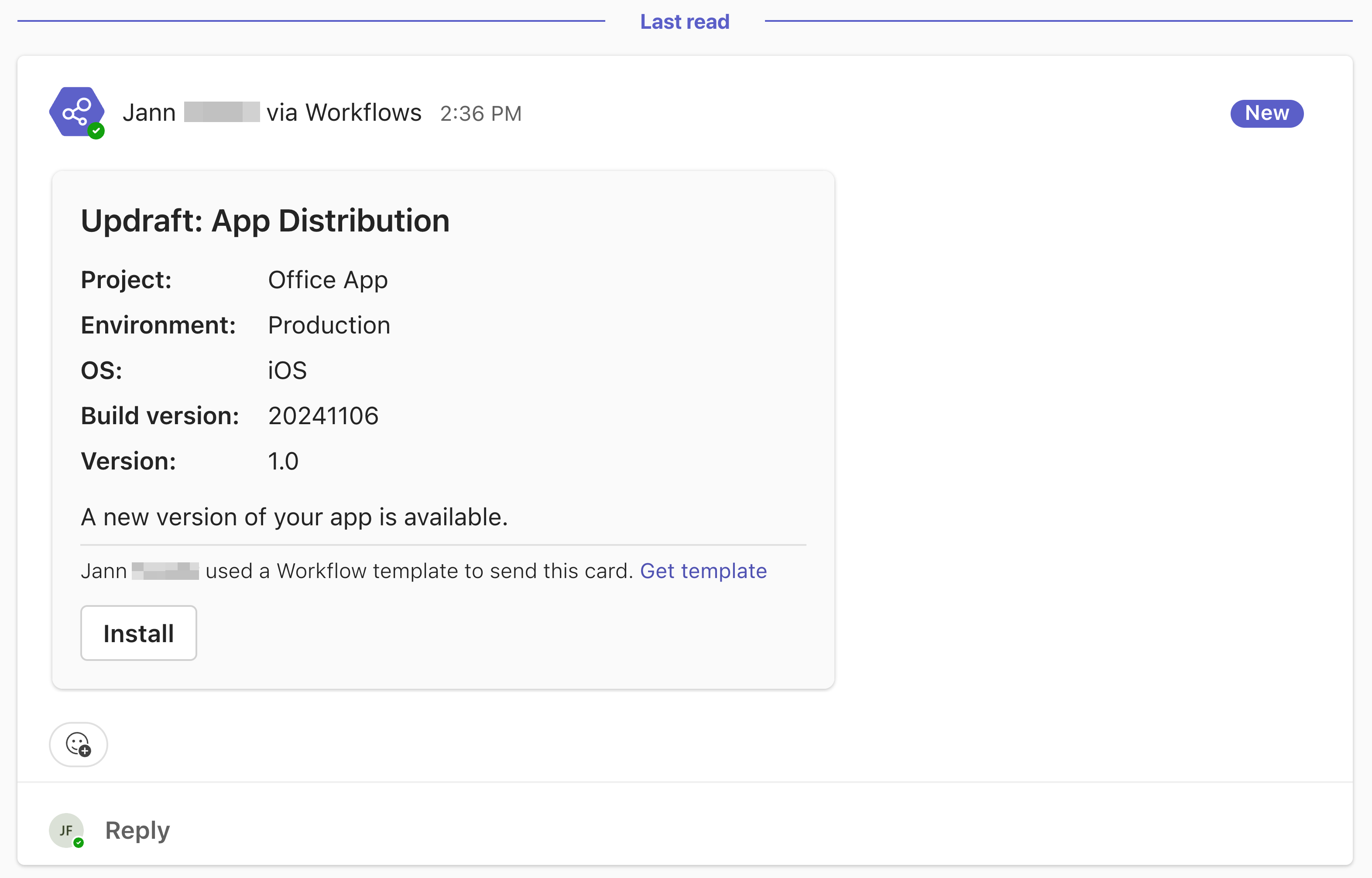 2. After a new build was uploaded, switch to Teams again and check your configured Channel.&#x20;